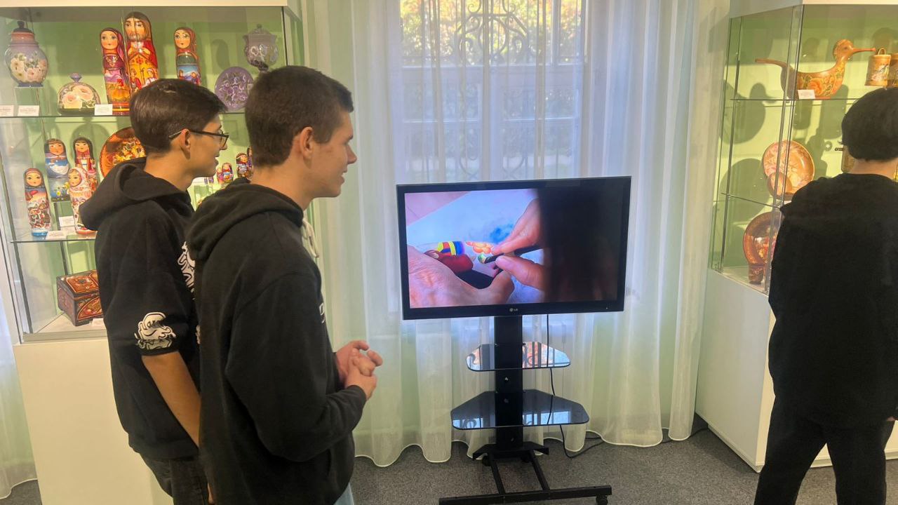 На выставке народного мастера Алтайского края Тамары Наговицыной «Мир, в котором хочется жить», ребята ознакомились с произведениями декоративно-прикладного искусства, традиционными художественными росписями, нанесёнными на привычные предметы быта.