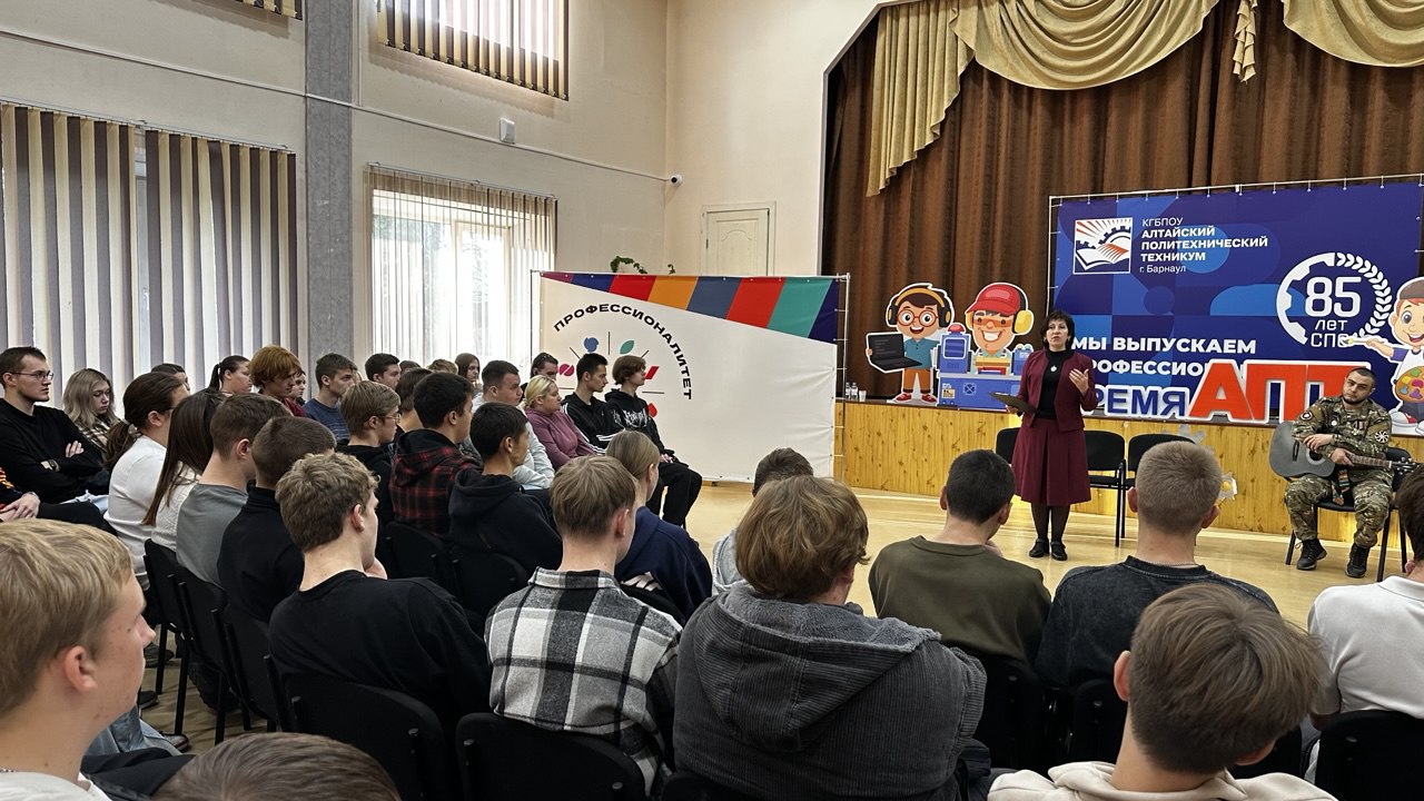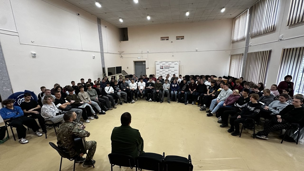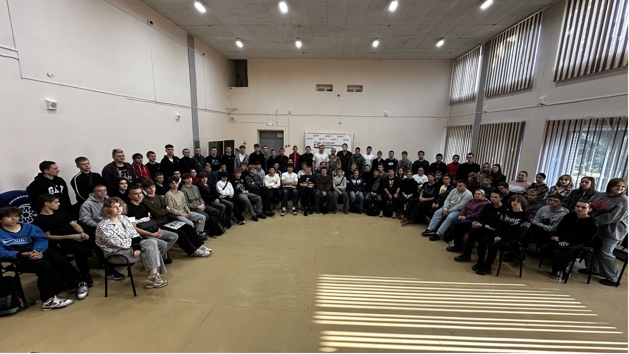 После — «Разговоры о важном». Казалось бы, всё как обычно, но дальше день приобрёл особый смысл. Обучающиеся первого отделения встретились с людьми, для которых слова «служить» и «защищать» — не просто строчки из клятвы. Наш выпускник Лайков Данияр Сакенович, младший лейтенант, начальник связи танкового батальона, ветеран боевых действий, и Махаев Иван Александрович, наш земляк, автор и исполнитель военных песен, согласились прийти и поговорить с ребятами. Эту встречу называли «Разговор по душам» — и она действительно такой и получилась. Никаких заранее заготовленных вопросов. Никаких длинных речей. Просто живое общение — глаза в глаза. Ребята спрашивали, слушали, иногда молчали. Слышно было, как в зале замирает воздух, когда гости рассказывали про первый день на передовой или про связь с домом, про страх, который есть у всех, и про то, как его учишься преодолевать.