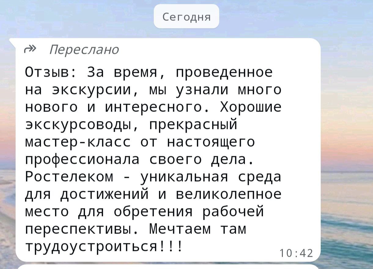 Встреча оказалась очень полезной для студентов. Они увидели, как работает крупная телекоммуникационная компания: узнали, какие системы обеспечивают бесперебойную работу телеком-оборудования, что сварка, например, бывает не только большим сварочным аппаратом, но и практически карманным. Для них такая экскурсия — возможность познакомиться с будущим рабочим местом и возможностью дальнейшего трудоустройства. Начальник станционного цеха Алтайского филиала «Ростелекома» Александр Васильев провел студентов по серверной, которую в компании называют «сердцем» алтайской связи. В ней размещено технологическое оборудование, которое обслуживает каналы связи всего региона. Ведущий инженер центра эксплуатации филиала Алексей Жуков продемонстрировал участникам встречи кропотливый процесс сварки оптики.