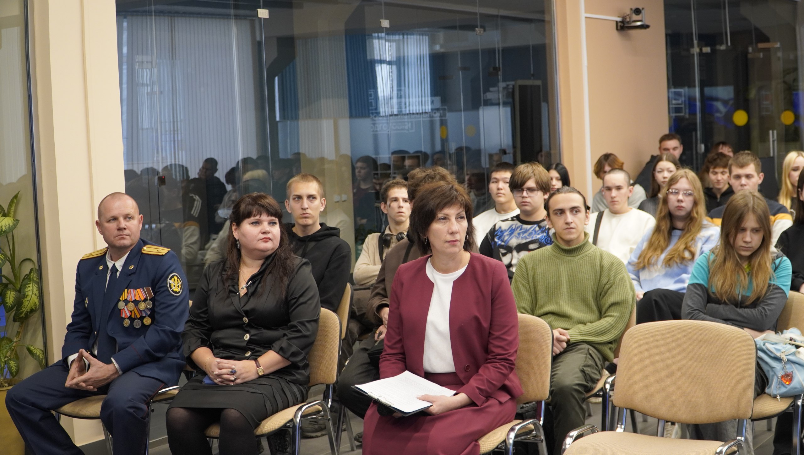 Разговор получился глубоким и человечным. Дмитрий Сергеевич говорил о службе, о товарищах, чьи поступки остаются в сердце навсегда. Он отметил, что героизм — это не громкое слово, а внутренний выбор человека, готового поступать честно и ответственно, когда трудно. Любовь Васильевна поделилась историями о тех, кто ждёт, помогает и поддерживает, когда кажется, что сил уже нет. Её слова о стойкости, вере и заботе нашли живой отклик у студентов.