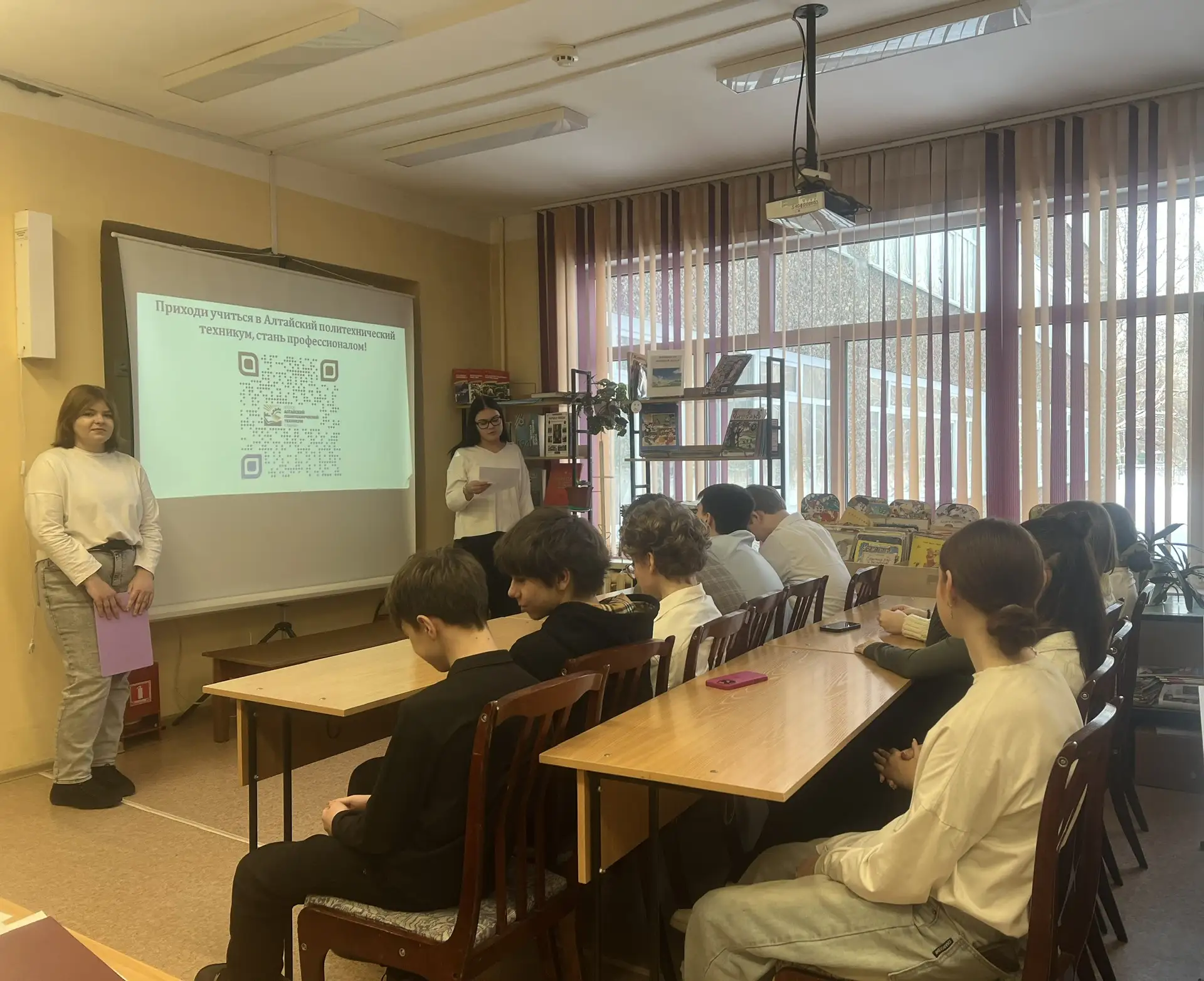 Цель визита - познакомить старшеклассников с современными и востребованными профессиями, которые можно получить в Алтайском политехническом техникуме.