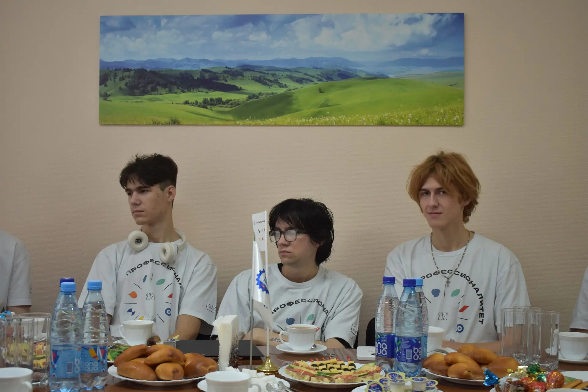 В завтраке приняли участие: Коновалов Максим Владимирович, генеральный директор Алтайского приборостроительного завода «Ротор», председатель Алтайского регионального отделения Союза машиностроителей России, Цомаева Ирина Владимировна, заместитель генерального директора, Андреева Елена Викторовна, директор Алтайского политехнического техникума, студенты – амбассадоры техникума, в числе которых — Сектарев Данил, участник межрегиональных отборочных соревнований «Профессионалы».