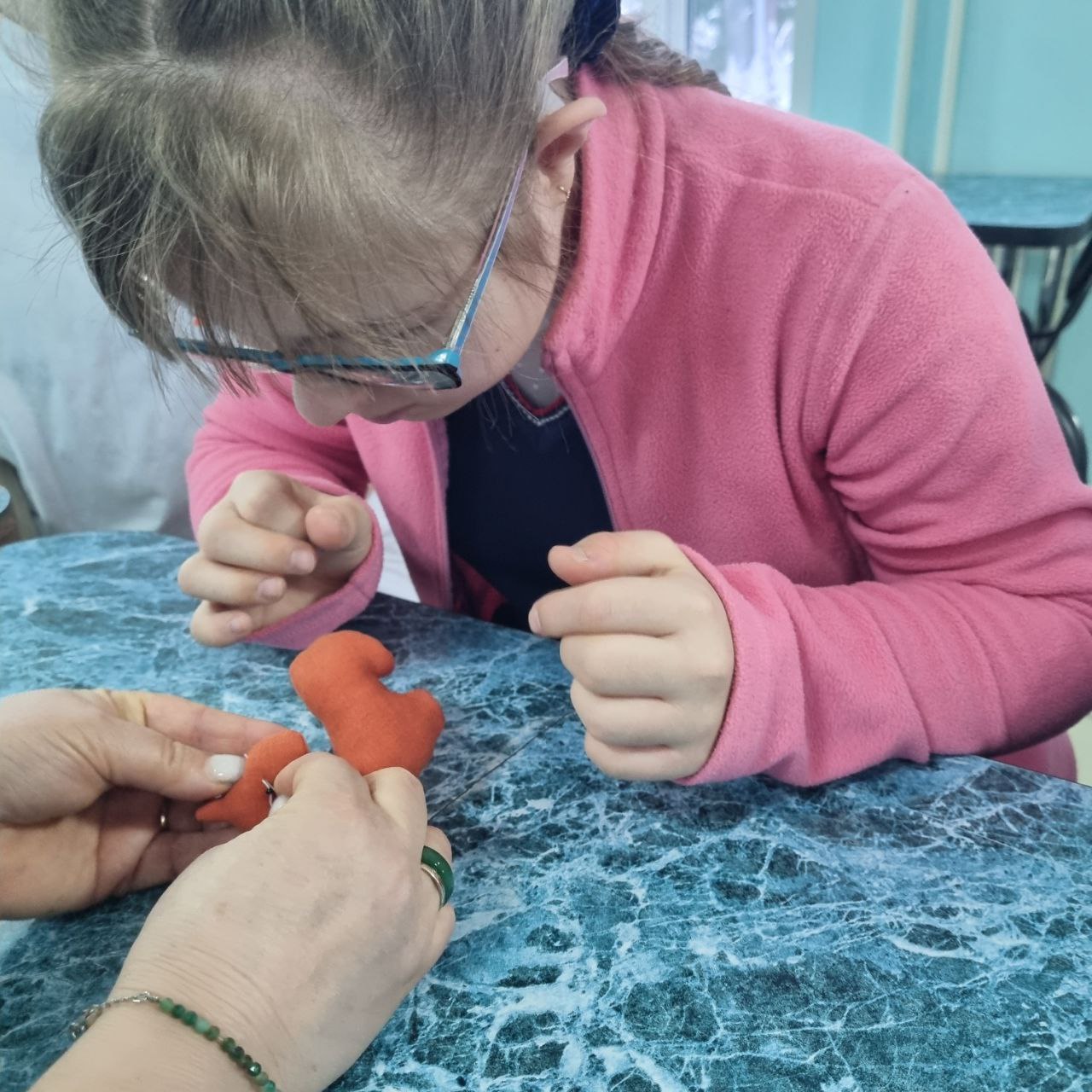 Студенты отделения с удовольствием и особой гордостью рассказывали о приобретённых навыках и делились опытом в процессе создания новогодней игрушки: швеи помогали школьникам изготовить символ будущего года, а художники-оформители создавали подсвечник и озорных лошадок из бумаги, расписывая их в различных техниках.