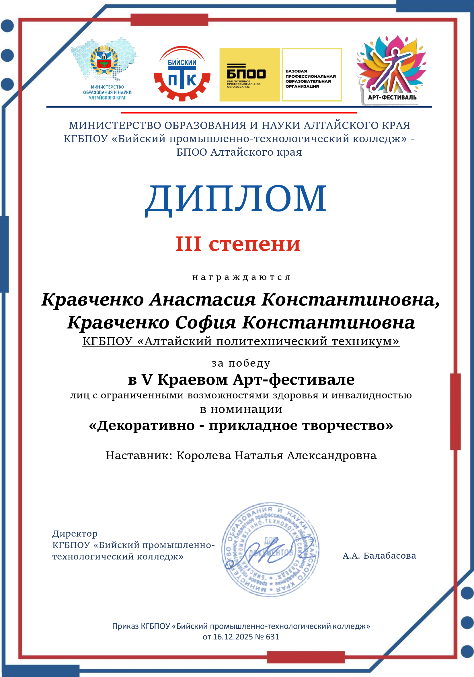 • Кравченко Анастасия и София продемонстрировали оригинальность воплощения творческой идеи, диплом 3 степени.