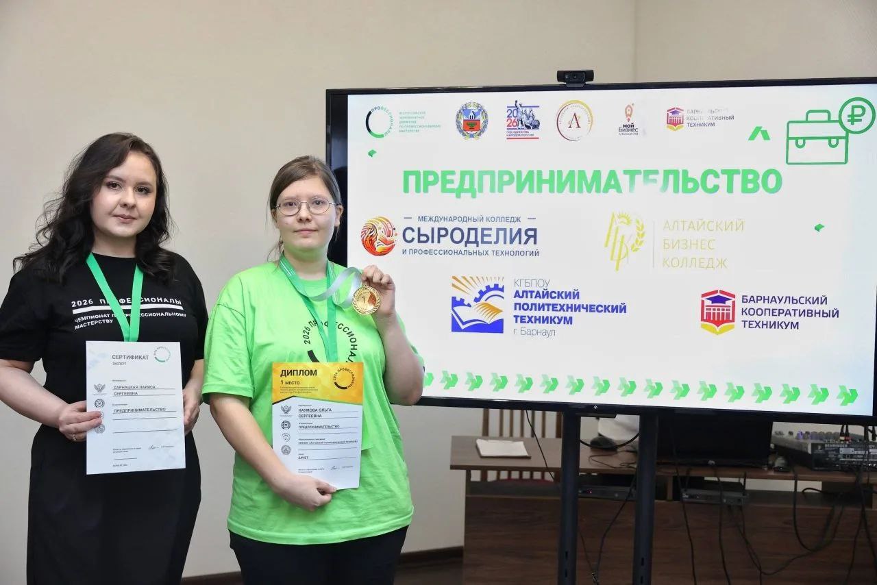 Ольга Наумова, студентка Алтайского политехнического техникума, показала лучший результат в компетенции «Предпринимательство» регионального этапа чемпионата «Профессионалы»!
