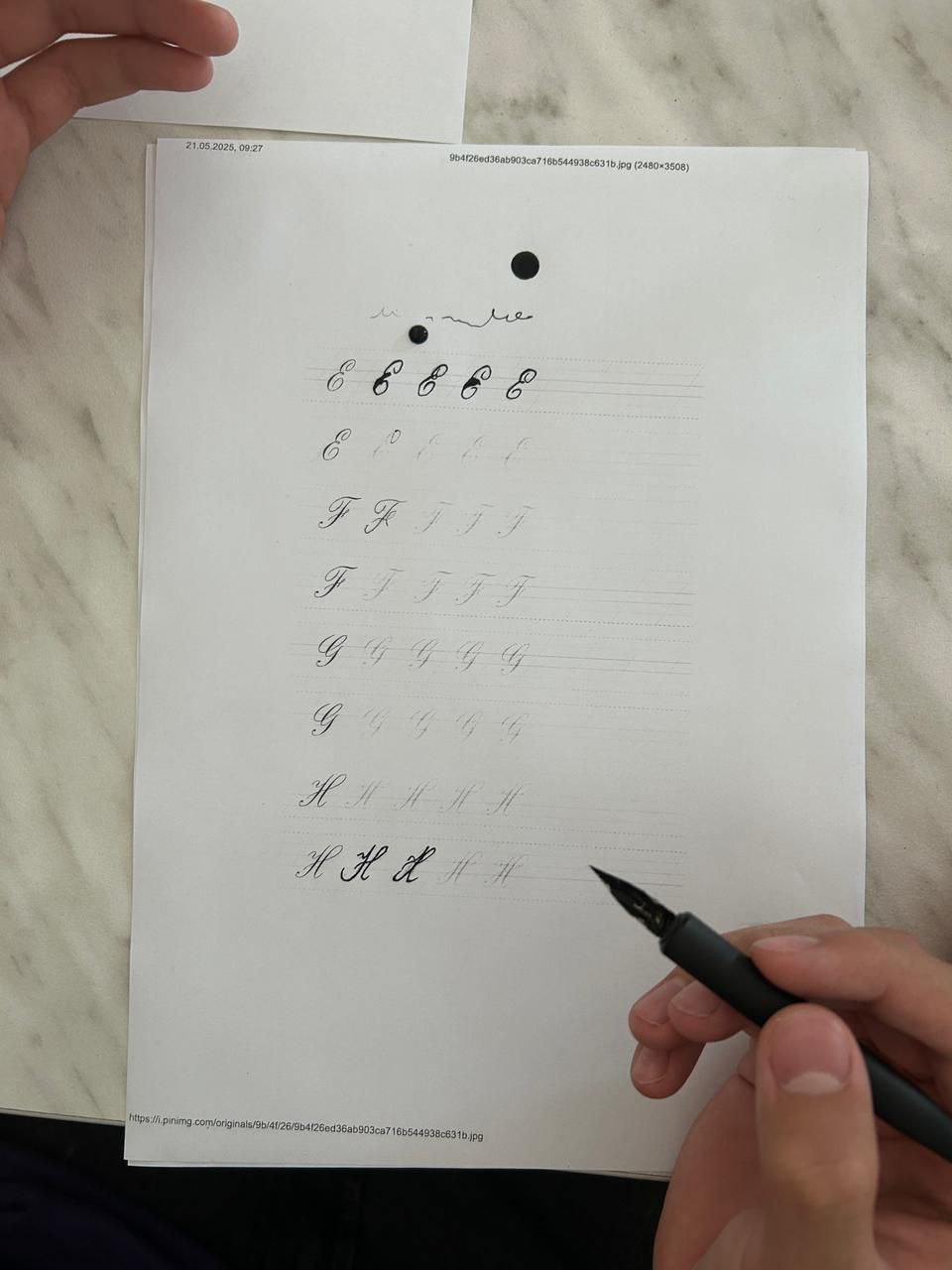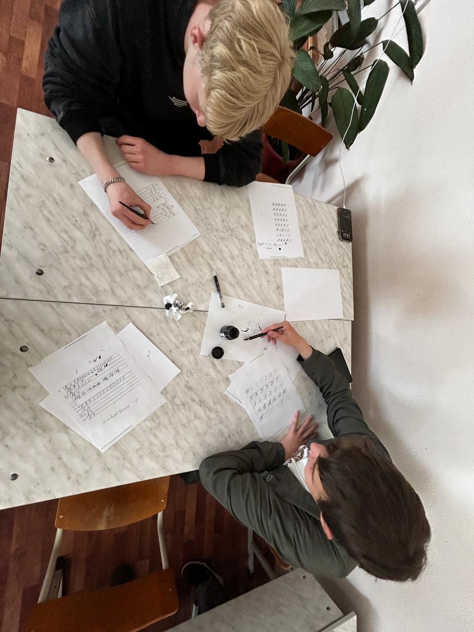 Следующей частью мероприятия стало практическое занятие, в ходе которого студенты учились писать пером. Участники были обеспечены необходимыми материалами: чернилами и перьями, а также специальными листами бумаги.