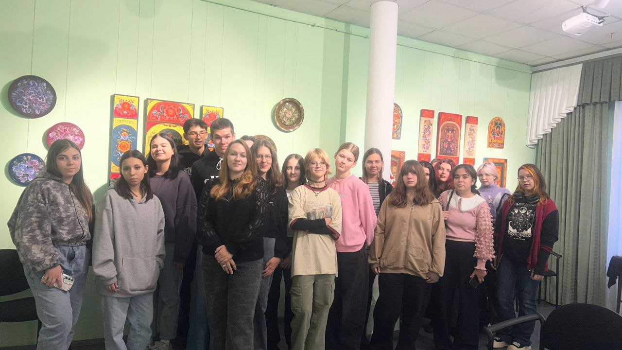 На выставке народного мастера Алтайского края Тамары Наговицыной «Мир, в котором хочется жить», ребята ознакомились с произведениями декоративно-прикладного искусства, традиционными художественными росписями, нанесёнными на привычные предметы быта.