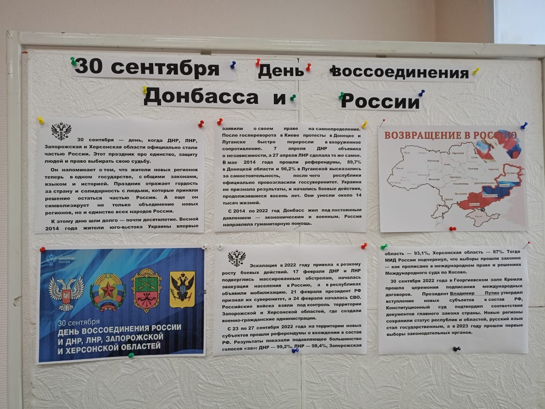 В кабинете истории организовали небольшую информационную выставку и отметили на карте России наши новые «старые» регионы.