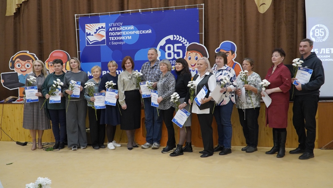 Этот день подтвердил, что Алтайский политехнический техникум — большая дружная семья, где ценят труд каждого и умеют говорить тёплые слова. Поздравляем всех сотрудников техникума с юбилеем системы среднего специального образования, педагогических работников — с Днём учителя и желаем неиссякаемого вдохновения!