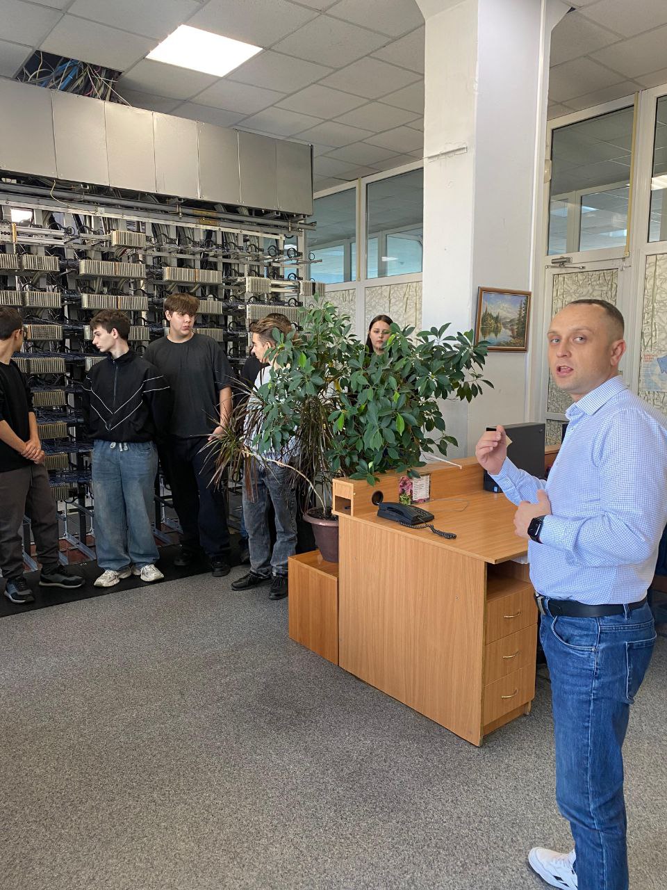 Студенты групп На-251, На-252 побывали в серверной, где познакомились с современным телеком-оборудованием.