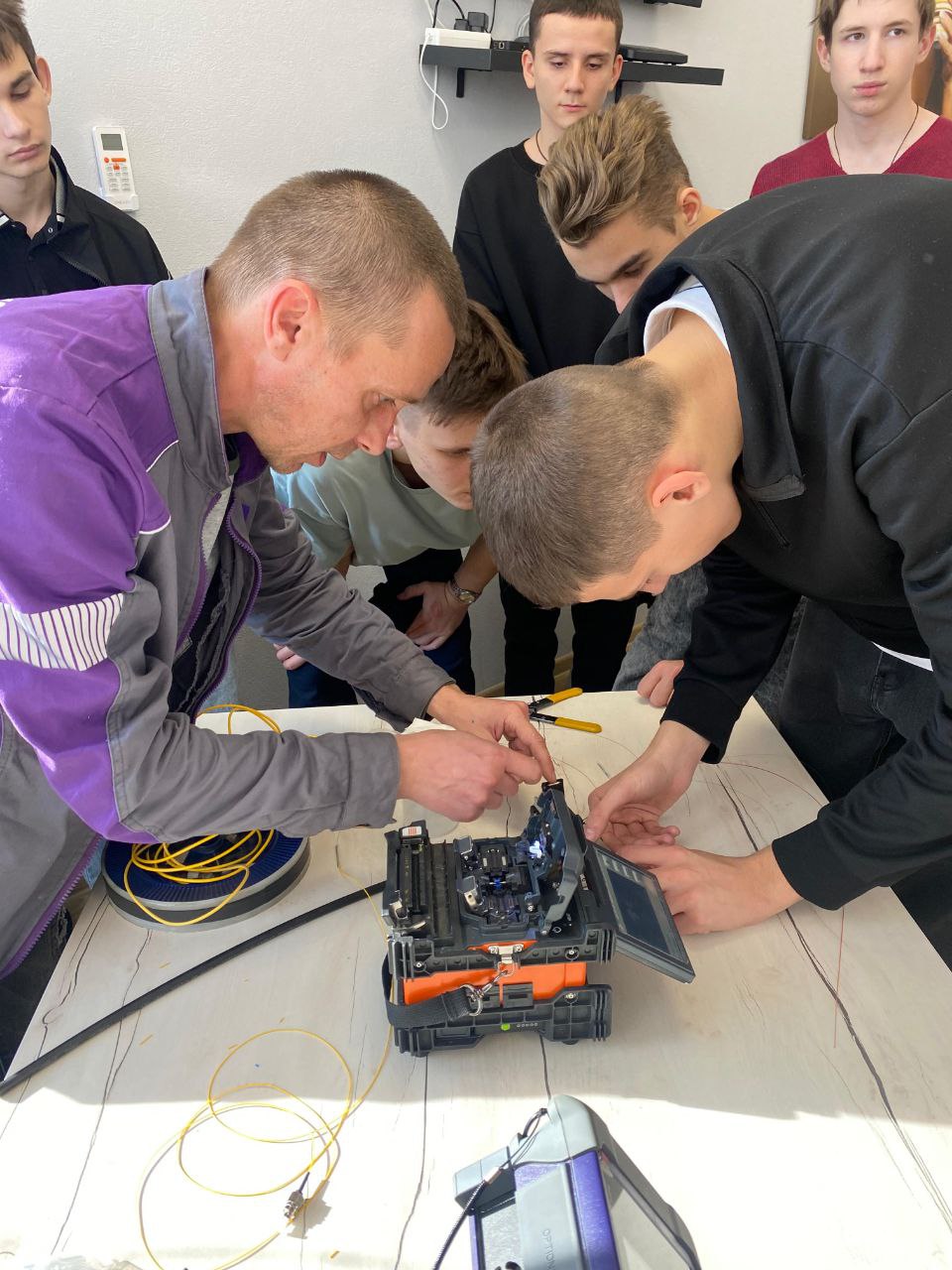 Александр Васильев, начальник станционного цеха рассказал о технологиях передачи данных, проектировании и строительстве оптических сетей. Алексей Жуков, ведущий инженер центра эксплуатации провел для ребят мастер-класс по сварке оптоволокна. Ребята попробовали себя в роли настоящих мастеров: смогли своими руками создать оптоволоконный элемент и узнать все тонкости этого процесса.