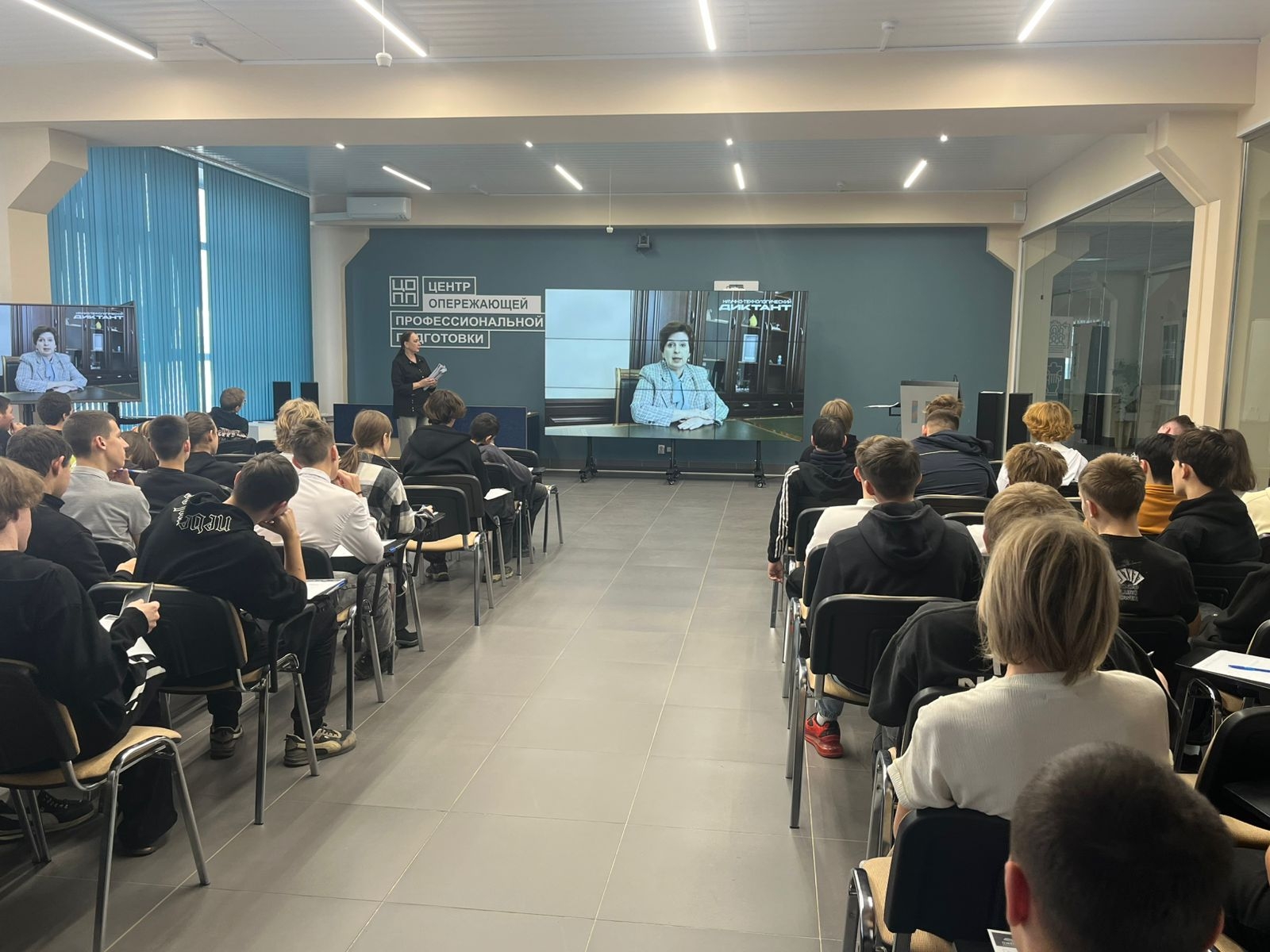 С приветственным словом к участникам Диктанта в видео-обращении обратилась заместитель Губернатора Новосибирской области по научно-технологическому развитию Ирина Викторовна Мануйловна.