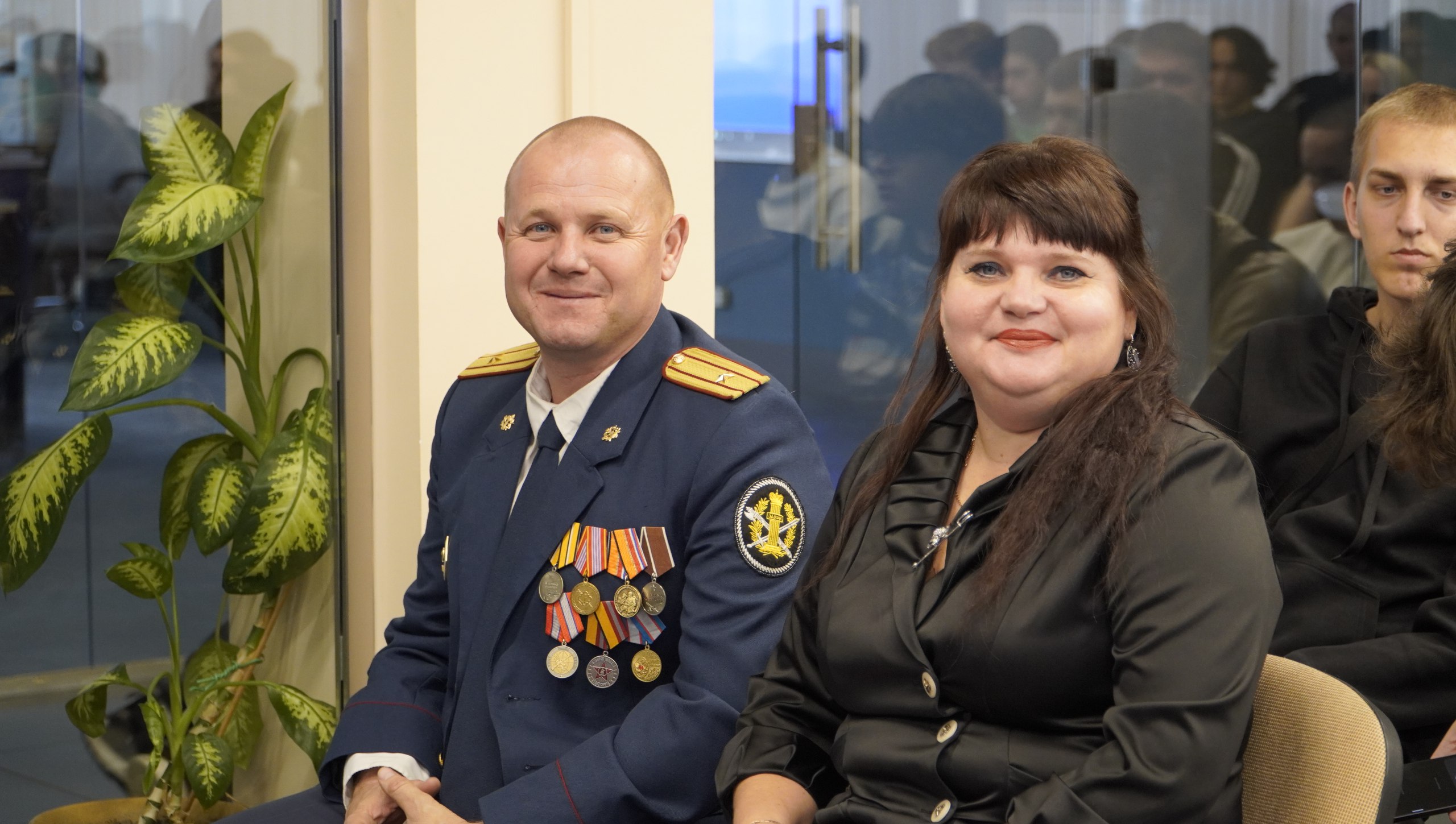 Разговор получился глубоким и человечным. Дмитрий Сергеевич говорил о службе, о товарищах, чьи поступки остаются в сердце навсегда. Он отметил, что героизм — это не громкое слово, а внутренний выбор человека, готового поступать честно и ответственно, когда трудно. Любовь Васильевна поделилась историями о тех, кто ждёт, помогает и поддерживает, когда кажется, что сил уже нет. Её слова о стойкости, вере и заботе нашли живой отклик у студентов.