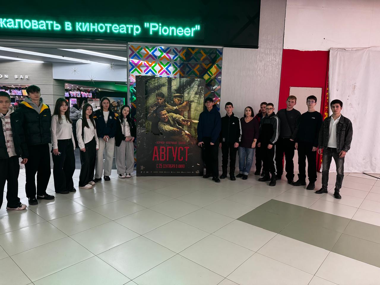 А студенты групп РЭУ-231, Р-221, ОИС-251 и ОИС-252 вместе с кураторами Чудаевой Т.В и Минаковой А.Н. посетили кинопоказ военного фильма «Август», повествующий о событиях 1944 года. Действие картины разворачивается в глубоких лесах Западной Белоруссии, куда были заброшены немецкие диверсанты для нанесения ударов по советским частям. Только благодаря мужеству и профессионализму сотрудников военной контрразведки СМЕРШ удалось предотвратить угрозу и обеспечить безопасность наступления советских войск.