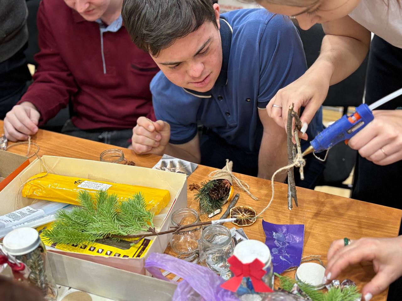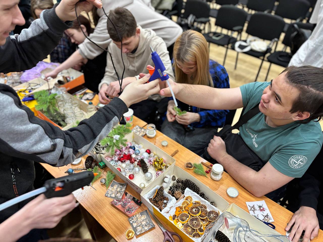 Ребята вместе с добровольцами изготовили яркие новогодние поделки своими руками. Мероприятие прошло в тёплой, дружелюбной атмосфере и подарило всем участникам радость и вдохновение.