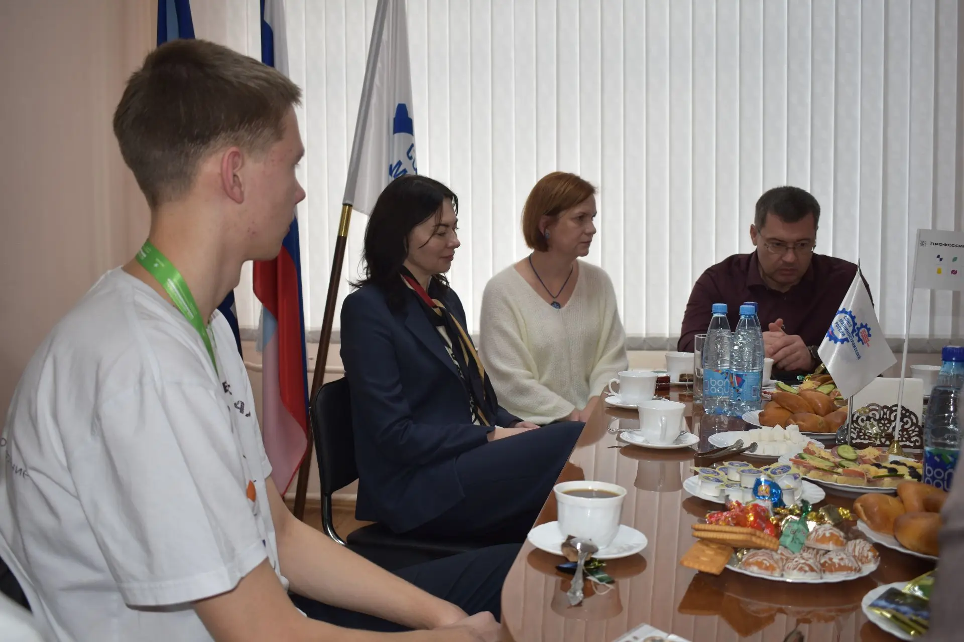 В завтраке приняли участие: Коновалов Максим Владимирович, генеральный директор Алтайского приборостроительного завода «Ротор», председатель Алтайского регионального отделения Союза машиностроителей России, Цомаева Ирина Владимировна, заместитель генерального директора, Андреева Елена Викторовна, директор Алтайского политехнического техникума, студенты – амбассадоры техникума, в числе которых — Сектарев Данил, участник межрегиональных отборочных соревнований «Профессионалы».