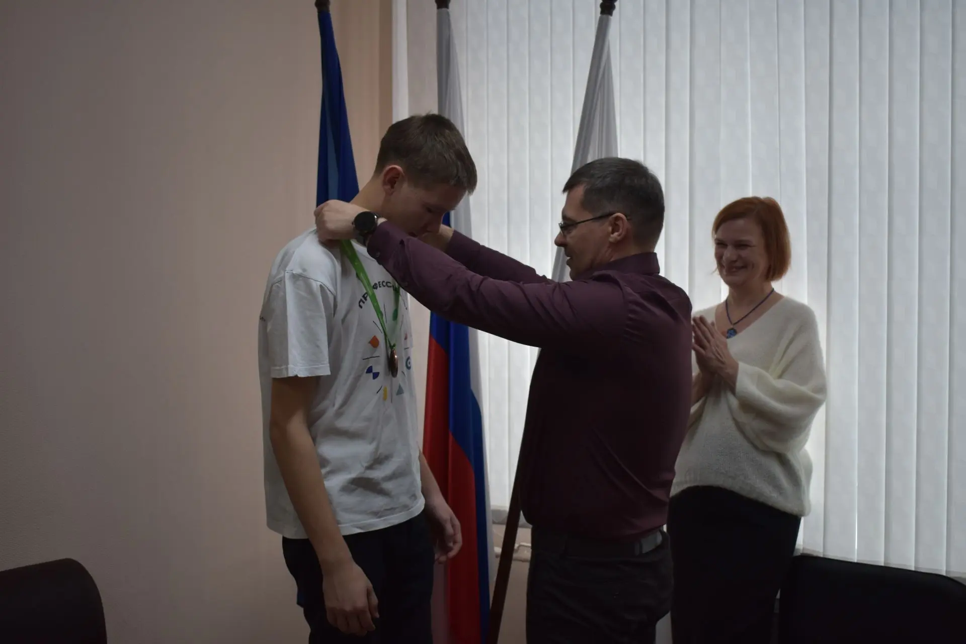 Особый момент встречи — награждение Данила Сектарева. За высокие достижения и стремление к профессиональному мастерству директор завода «Ротор» лично вручил ему памятный медальон, подчеркнув значимость его вклада в развитие движения «Профессионалы» в регионе.