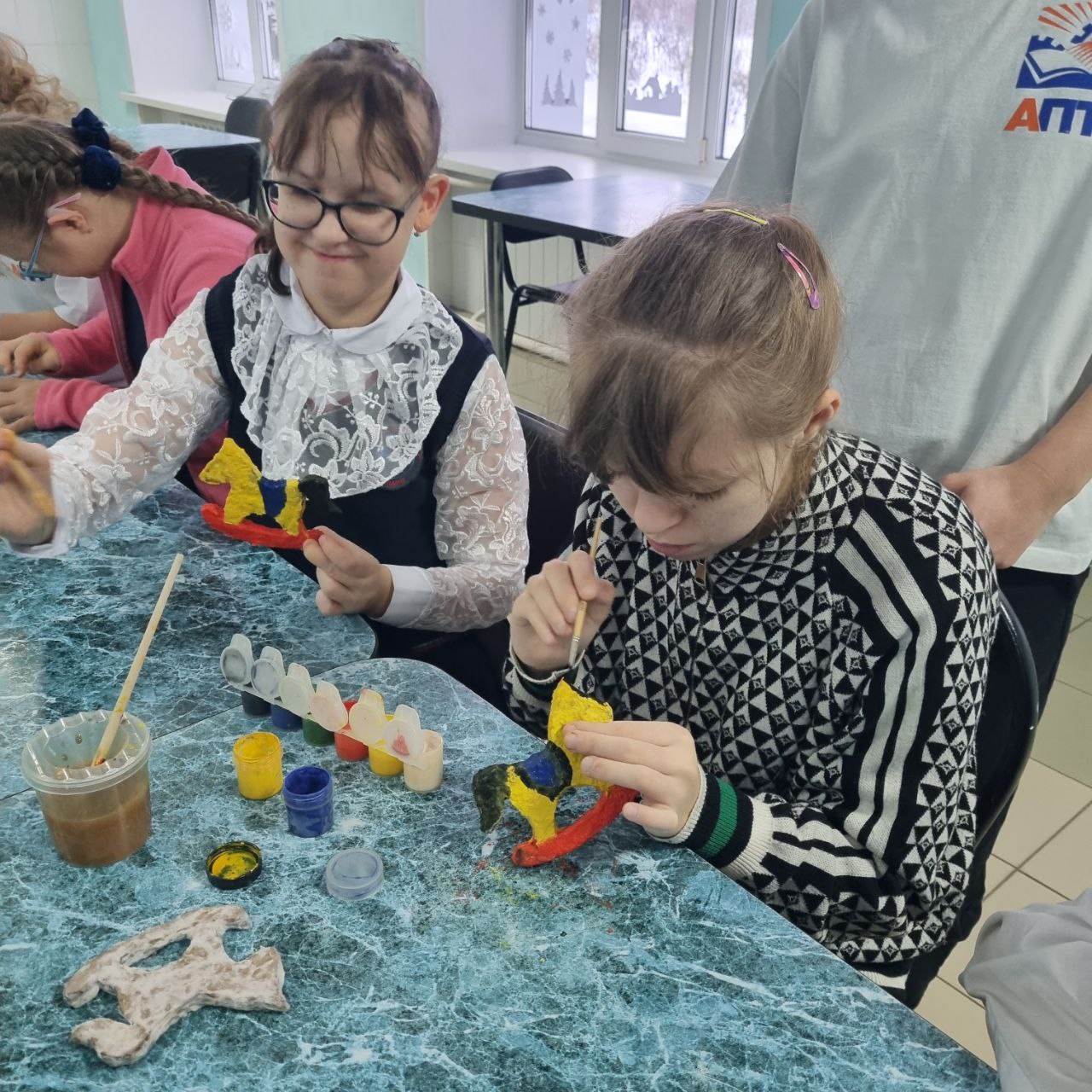 Студенты отделения с удовольствием и особой гордостью рассказывали о приобретённых навыках и делились опытом в процессе создания новогодней игрушки: швеи помогали школьникам изготовить символ будущего года, а художники-оформители создавали подсвечник и озорных лошадок из бумаги, расписывая их в различных техниках.