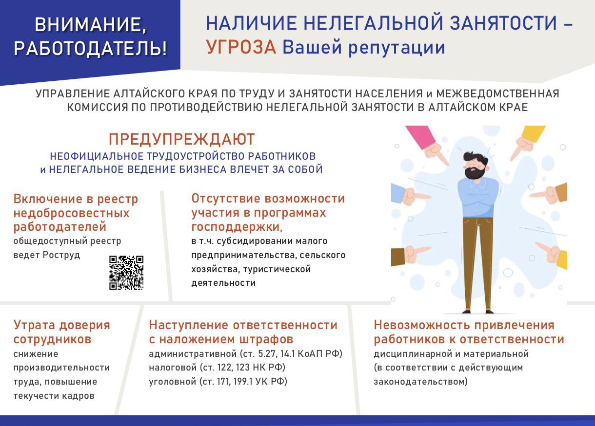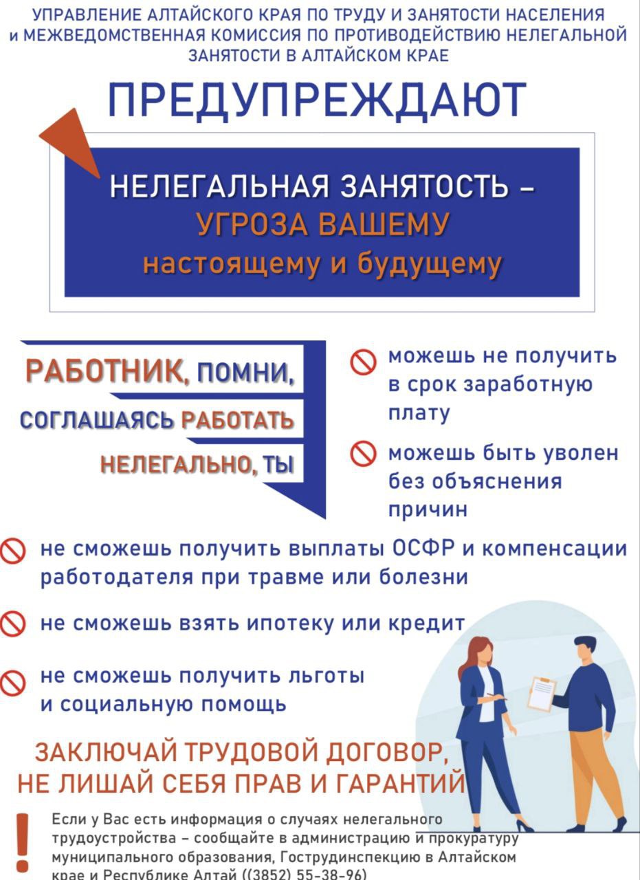 Управление Алтайского края по труду и занятости населения и межведомственная комиссия по противодействию нелегальной занятости в Алтайском крае напоминает!