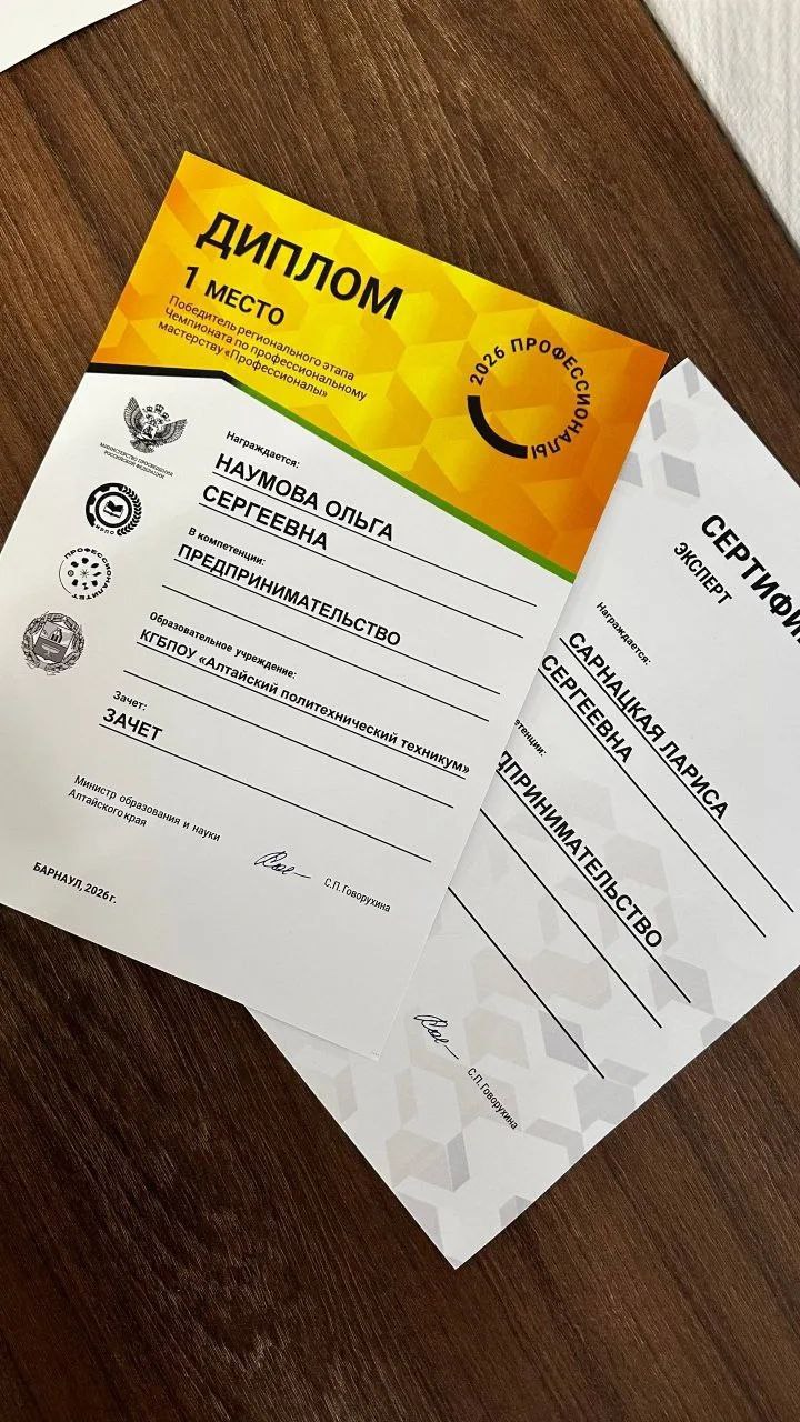 Ольга Наумова, студентка Алтайского политехнического техникума, показала лучший результат в компетенции «Предпринимательство» регионального этапа чемпионата «Профессионалы»!