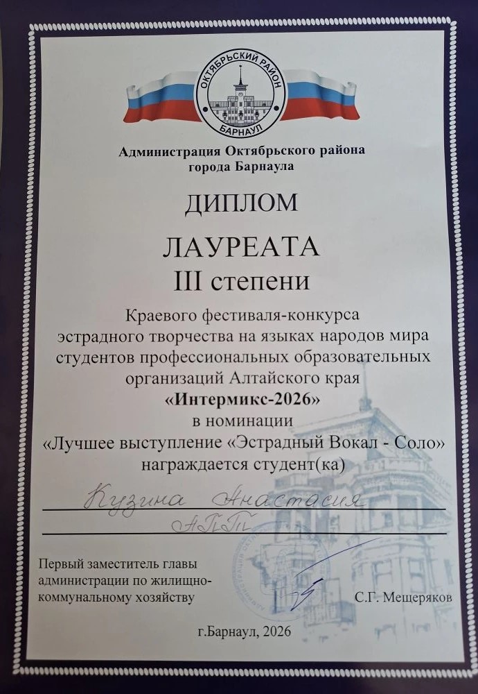 «Интермикс» стал ярким праздником творчества, дружбы и культурного обмена, показав, насколько талантливы молодые люди, обучающиеся в системе СПО Алтайского края.