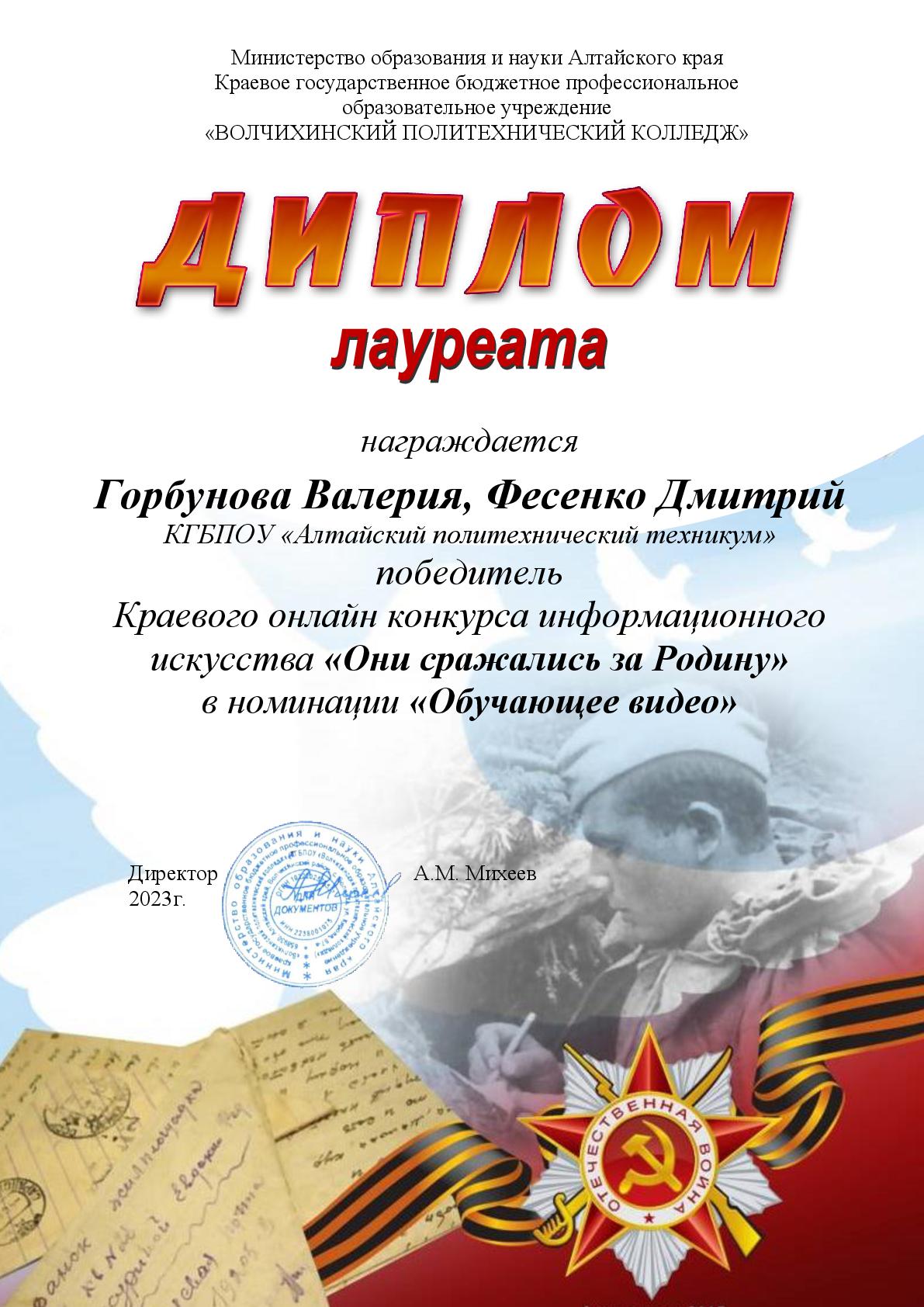 В КГБПОУ «Волчихинский политехническом колледж» прошел Краевой онлаин конкурс информационного искусства «Они сражались за Родину».